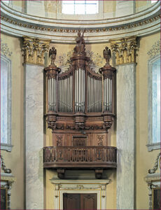 Depuis le début du XIXe siècle, le Grand Séminaire de Liège est installé dans l’ancienne abbaye des Prémontrés, nouveau siège épiscopal destiné à succéder à l’ancien Palais des Princes-Évêques (actuel Palais de Justice, situé place Saint-Lambert). Cette église contenait précédemment un orgue reconstruit vers 1760-1770 par un auteur inconnu, au départ d’éléments du XVIIe siècle. Il fut entretenu successivement par Henri Müseler, François-Joseph Cralle, Guillaume Robustelly et Joseph Colin, avant d’être transféré en 1809 à Mortroux, où il attend toujours sa restauration. Le buffet concave de cet orgue devait s’adapter, déjà, à la rotondité de l’église. Dès 1808 pourtant, les responsables du Séminaire obtiennent du préfet de récupérer l’orgue construit pour l’église Saint-Michel (détruite) par Jacques Boesmans (XVIIe siècle). Il ne sera finalement placé que dix ans plus tard…